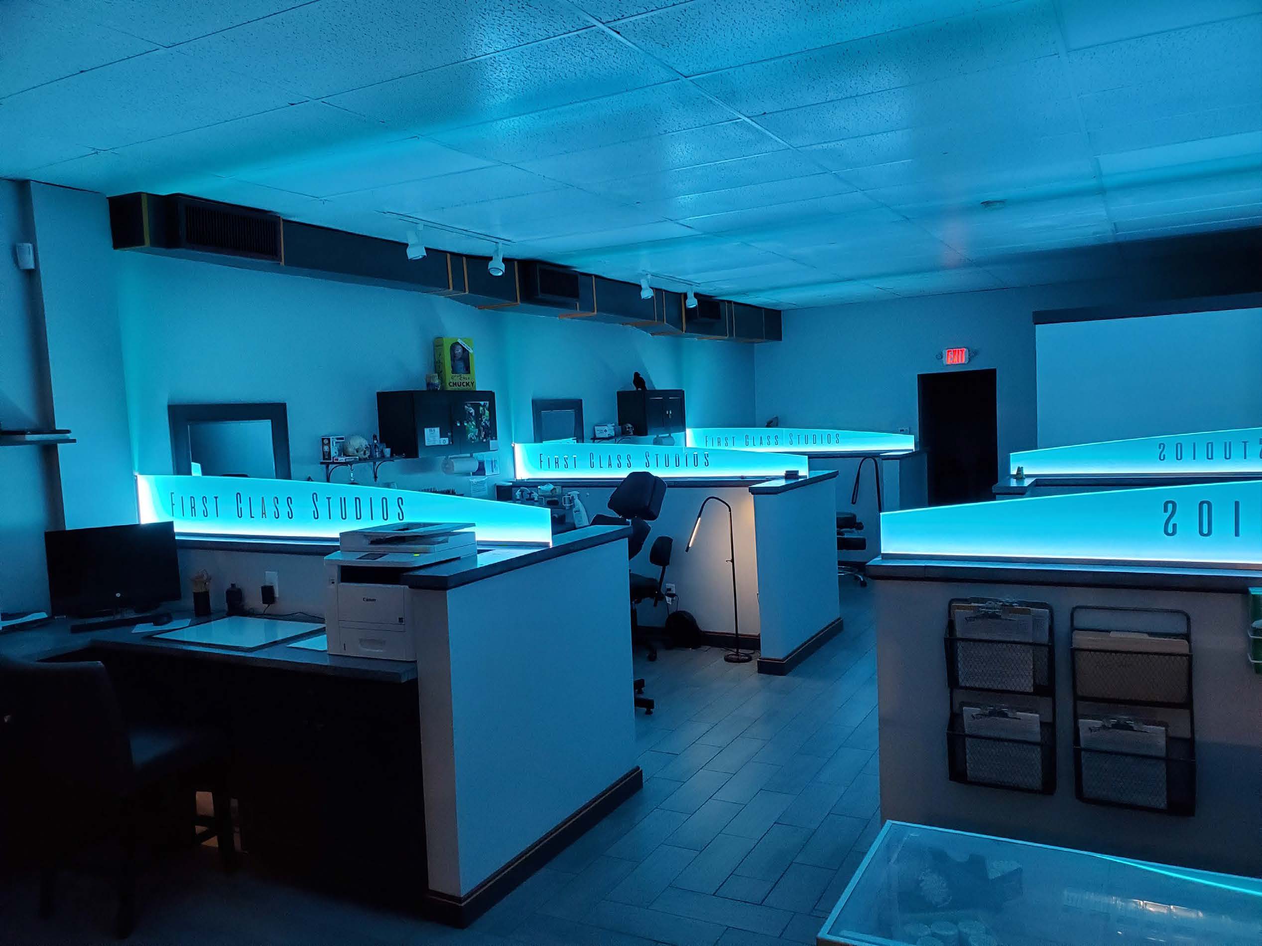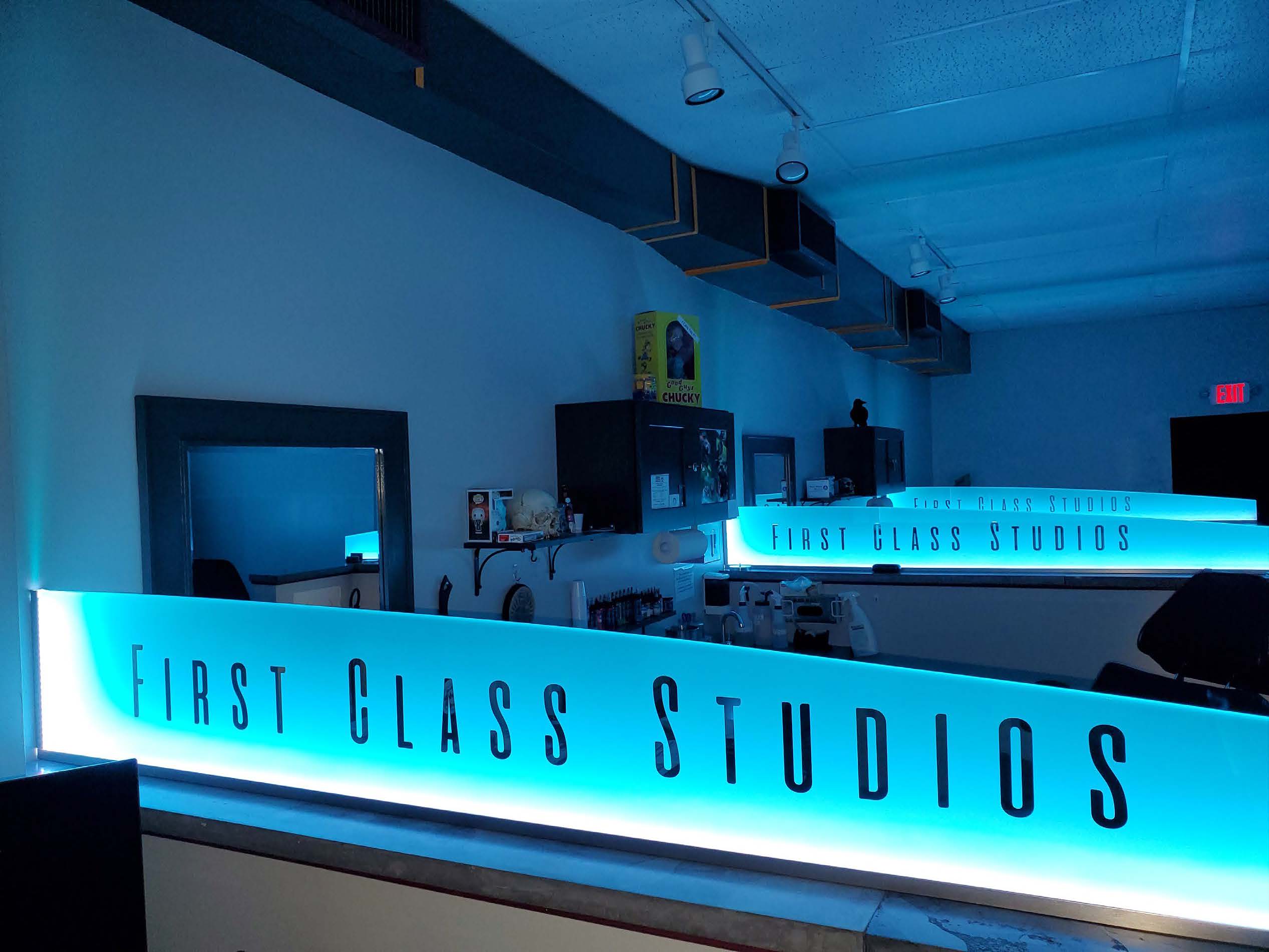 Leaving stereotypes behind, First Class Studios redefines what a tattoo studio should be, today and tomorrow. Clean, friendly and interactive. First Class Studios delivers a fresh vision on the modern tattoo studio in order to set the pace in an industry that has leapt into the spotlight in recent years. Click on our virtual tour or better yet, stop in and see what we are all about.
